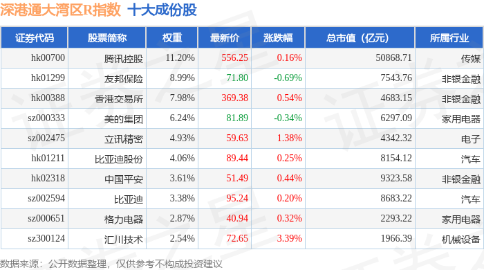 深港通大湾区R(483089)指数十大成份股详情如下: