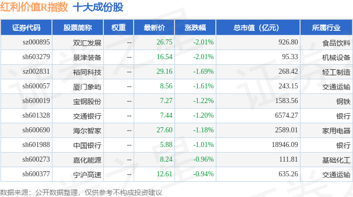 红利价值R(489016)指数十大成份股详情如下: