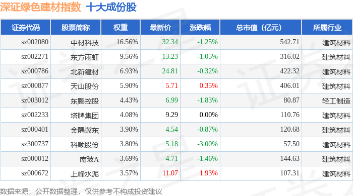 近10日内深证绿色建材(970077)指数成份股做了调整,新纳入了5只股票,剔除了5只股票。