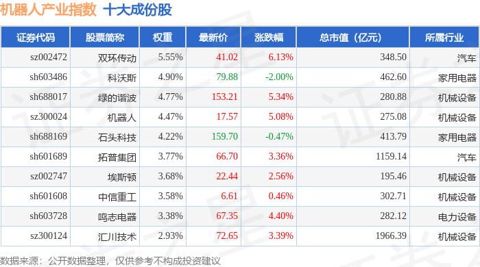 近10日内机器人产业(980022)指数成份股做了调整,新纳入了5只股票。
