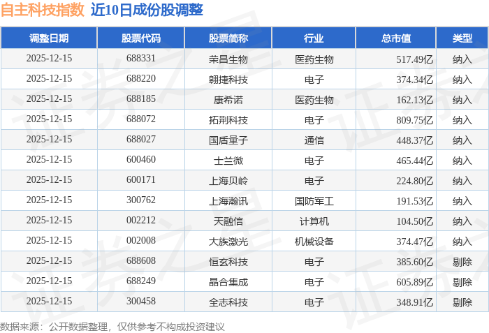 近10日内自主科技(980033)指数成份股做了调整,新纳入了10只股票,剔除了3只股票。