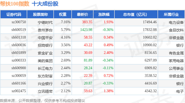 近10日内帮扶100(980065)指数成份股做了调整,新纳入了5只股票。
