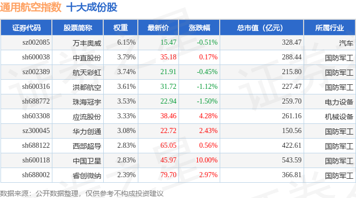 近10日内通用航空(980076)指数成份股做了调整,新纳入了2只股票。