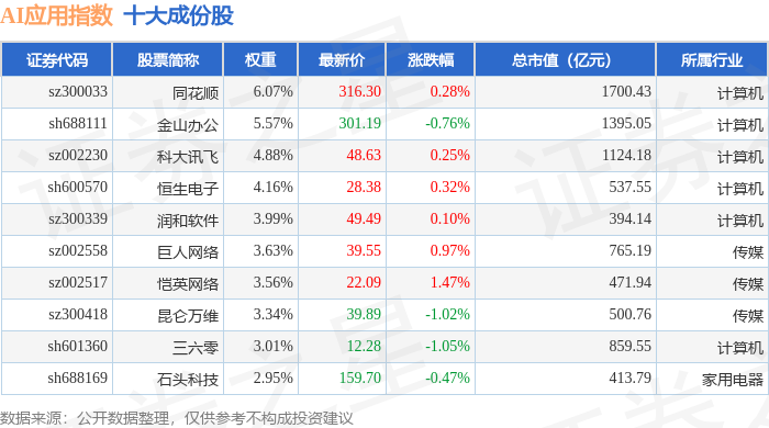 近10日内AI应用(980112)指数成份股做了调整,新纳入了3只股票,剔除了3只股票。