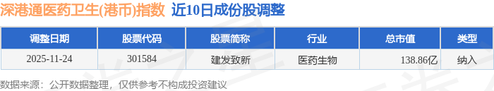 近10日内深港通医药卫生(港币)(983024)指数成份股做了调整,新纳入了1只股票。