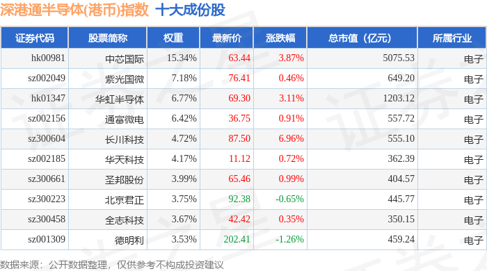深港通半导体(港币)(983068)指数十大成份股详情如下: