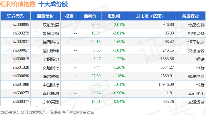 红利价值(989016)指数十大成份股详情如下:
