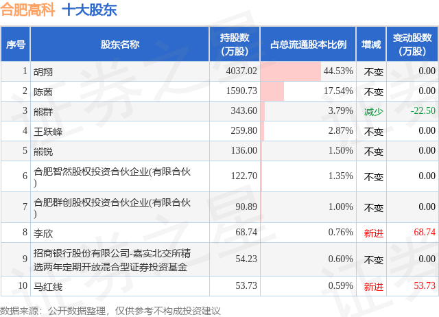 根据合肥高科2025年三季报公布的十大股东详情如下:
