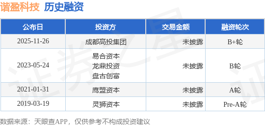证券之星消息,根据天眼查APP于11月26日公布的信息整理,成都谐盈科技有限公司B+轮融资,融资额未披露,参与投资的机构包括成都高投集团。