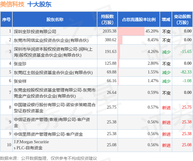 根据美信科技2025年三季报公布的十大股东详情如下: