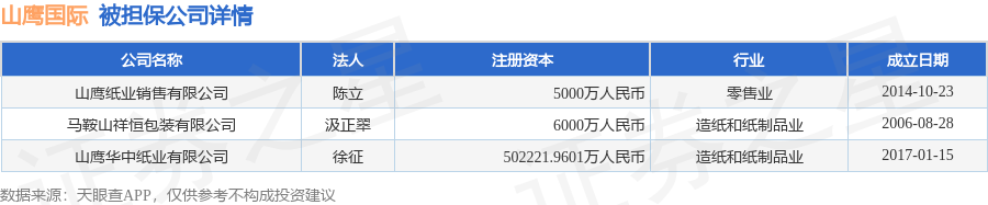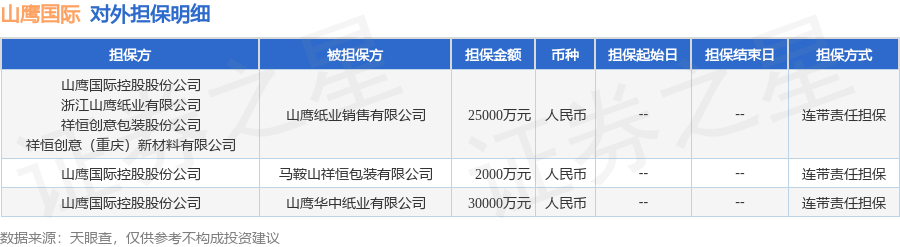 山鹰国际12月3日披露3笔对外担保,被担保公司3家。对外担保明细如下表: