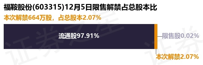 证券之星消息,根据市场公开信息整理,福鞍股份(603315)于12月5日将有664.0万股限售股份解禁,为公司股权激励限售股份,占公司总股本2.07%。(本次数据根据历史公告整理得出,实际情况以上市公司最新公告为准)最近一年内,该股累计解禁670.0万股,占总股本的2.09%。本次解禁后,公司还有6.0万股限售股份,占总股本0.02%。具体如下图所示: