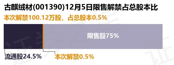 证券之星消息,根据市场公开信息整理,古麒绒材(001390)于12月5日将有100.12万股限售股份解禁,为公司首发机构配售股份,占公司总股本0.5%。(本次数据根据历史公告整理得出,实际情况以上市公司最新公告为准)本次解禁后,公司还有1.5亿股限售股份,占总股本75.0%。具体如下图所示: