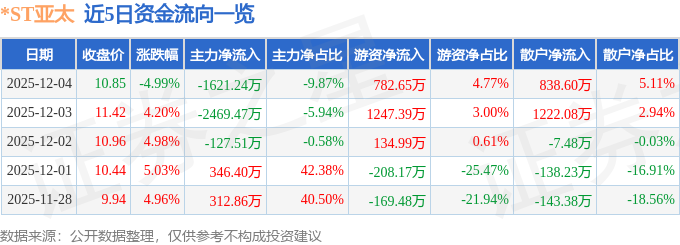 证券之星12月5日盘中消息,9点42分*ST亚太(000691)触及跌停板。其所属行业化学原料目前下跌。领涨股为新金路。