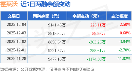 证券之星消息,12月4日,霍莱沃(688682)融资买入708.32万元,融资偿还485.21万元,融资净买入223.11万元,融资余额9141.43万元,近20个交易日中有11个交易日出现融资净买入。