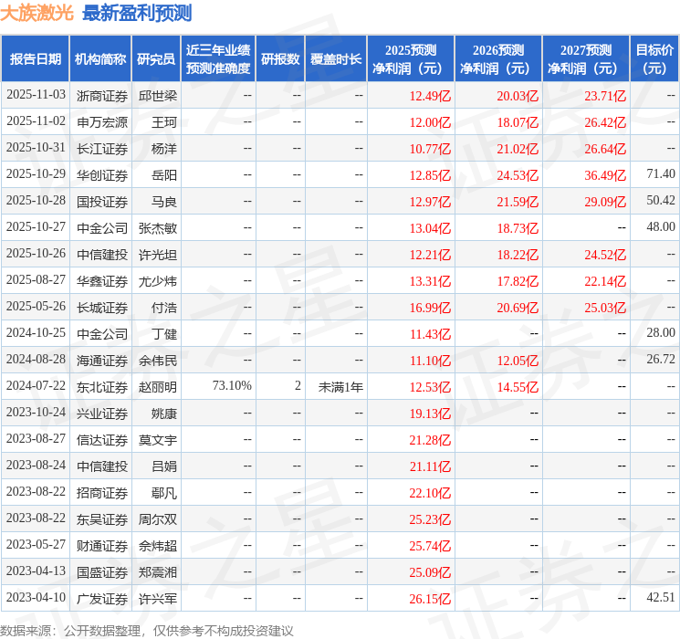大族激光2025年三季报显示,前三季度公司主营收入127.13亿元,同比上升25.51%;归母净利润8.63亿元,同比下降39.46%;扣非净利润5.68亿元,同比上升51.46%;其中2025年第三季度,公司单季度主营收入51.0亿元,同比上升35.14%;单季度归母净利润3.75亿元,同比上升86.51%;单季度扣非净利润3.07亿元,同比上升98.47%;负债率50.71%,投资收益-4303.07万元,财务费用-807.4万元,毛利率32.57%。