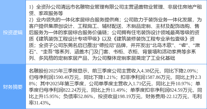 该股为装修装饰,物业管理概念热股,当日装修装饰概念上涨1.6%,物业管理概念上涨1.06%。