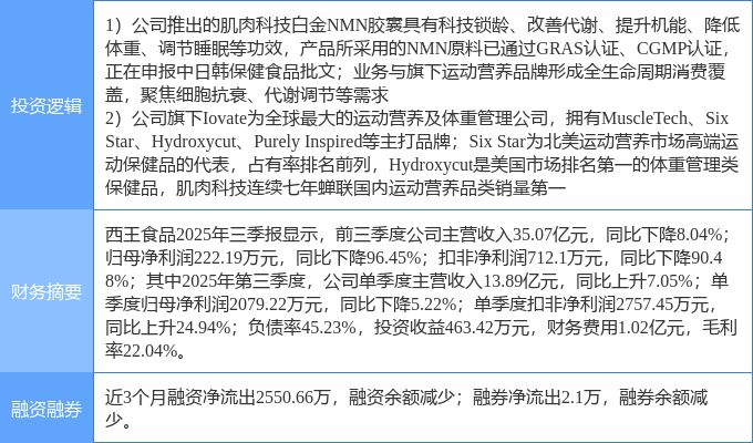 该股为食品,长寿药NMN,保健品概念热股,当日食品概念上涨0.91%,长寿药NMN概念上涨0.02%。