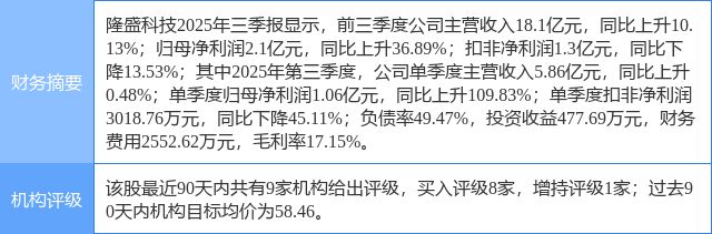 2025年10月21日,华龙证券研究员杨阳,李浩洋发布了对隆盛科技的研报《2025年三季报点评报告:Q3归母净利润同比+109.83%,积极推进机器人业务落地》,该研报对隆盛科技给出“买入”评级。研报中预计公司2025-2027年归母净利润分别为3.27/4.14/4.82亿元,当前股价对应PE为37.4/29.5/25.3倍,维持“买入”评级。证券之星数据中心根据近三年发布的研报数据计算,该研报作者对此股的盈利预测准确度为93.03%。