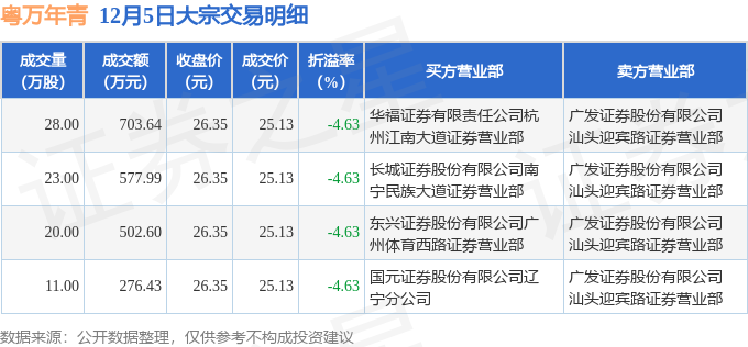 证券之星消息,12月5日粤万年青发生大宗交易,交易数据如下: