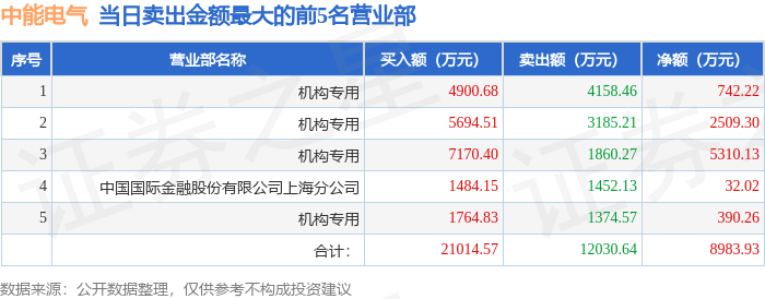 证券之星消息,沪深交易所2025年12月5日公布的交易公开信息显示,中能电气(300062)因日换手率达到30%的前5只证券登上龙虎榜。此次是近5个交易日内第1次上榜。
