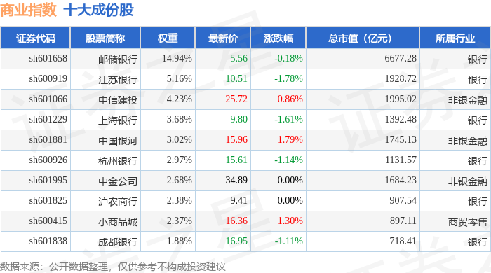 商业指数(000005)十大成份股详情如下: