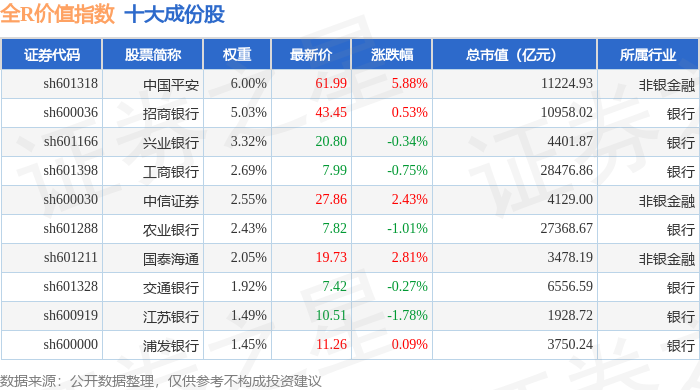 全R价值(000060)指数十大成份股详情如下: