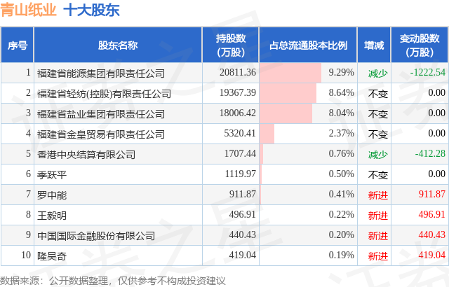 根据青山纸业2025年三季报公布的十大股东详情如下: