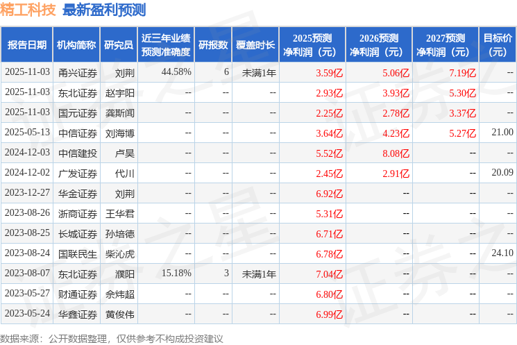 精工科技2025年三季报显示,前三季度公司主营收入13.43亿元,同比上升13.7%;归母净利润1.45亿元,同比上升98.18%;扣非净利润1.22亿元,同比上升97.05%;其中2025年第三季度,公司单季度主营收入2.82亿元,同比上升28.53%;单季度归母净利润3129.12万元,同比上升224.44%;单季度扣非净利润1922.85万元,同比上升167.74%;负债率42.47%,投资收益591.02万元,财务费用181.61万元,毛利率29.78%。
