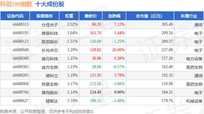 证券之星消息,12月5日,科创200(000699)指数报收于1236.49点,涨1.97%,成交471.81亿元,换手率2.29%。当日该指数成份股中,上涨的有166家,长光华芯以20.0%的涨幅领涨,下跌的有33家,华海诚科以4.15%的跌幅领跌。