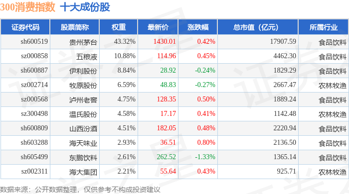 证券之星消息,12月5日,300消费(000912)指数报收于21471.81点,涨0.3%,成交109.3亿元,换手率0.34%。当日该指数成份股中,上涨的有13家,金龙鱼以1.15%的涨幅领涨,下跌的有4家,东鹏饮料以1.33%的跌幅领跌。