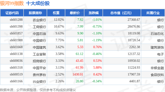 银河99(000959)指数十大成份股详情如下: