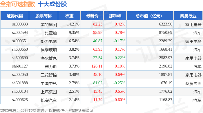 全指可选(000989)指数十大成份股详情如下: