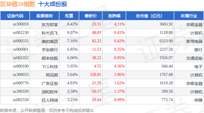 资金流向方面,区块链50(399286)指数成份股当日主力资金净流入合计17.19亿元,游资资金净流出合计9.52亿元,散户资金净流出合计7.67亿元。成份股资金流向详情见下表: