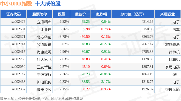 中小100R(399333)指数十大成份股详情如下: