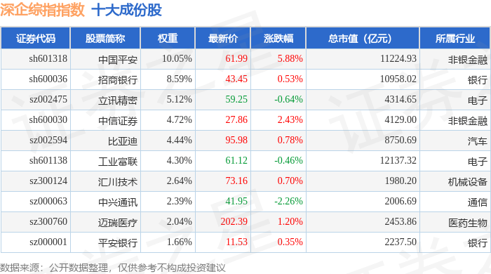 证券之星消息,12月5日,深企综指(399352)指数报收于10612.58点,涨1.32%,成交1813.89亿元,换手率1.97%。当日该指数成份股中,上涨的有301家,致尚科技以20.0%的涨幅领涨,下跌的有93家,和而泰以10.0%的跌幅领跌。