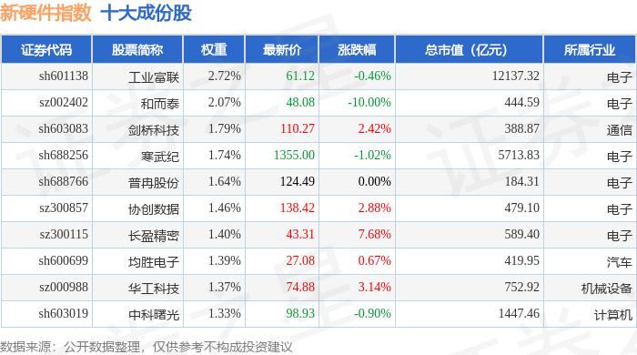 近10日内新硬件(399360)指数成份股做了调整,新纳入了2只股票。