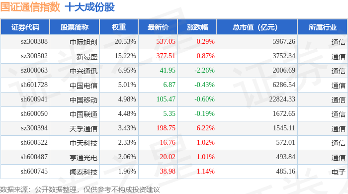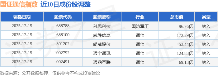 近10日内国证通信(399389)指数成份股做了调整,新纳入了5只股票。