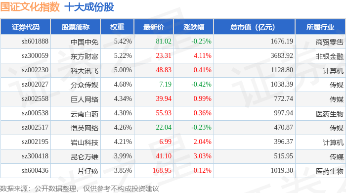 近10日内国证文化(399397)指数成份股做了调整,新纳入了1只股票。