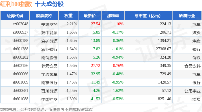 红利100(399411)指数十大成份股详情如下: