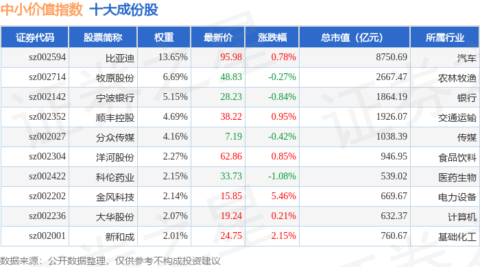 中小价值(399604)指数十大成份股详情如下: