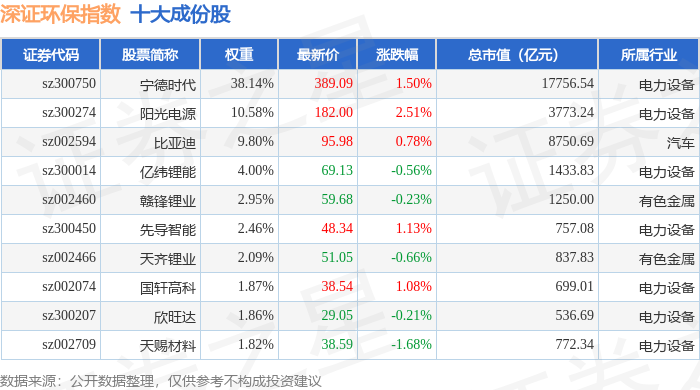 证券之星消息,12月5日,深证环保(399638)指数报收于7466.79点,涨1.25%,成交519.41亿元,换手率1.08%。当日该指数成份股中,上涨的有28家,惠城环保以8.01%的涨幅领涨,下跌的有11家,天华新能以4.36%的跌幅领跌。