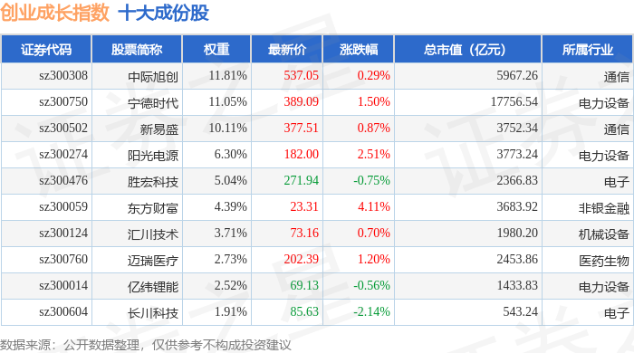 证券之星消息,12月5日,创业成长(399667)指数报收于5256.2点,涨1.21%,成交1321.83亿元,换手率2.71%。当日该指数成份股中,上涨的有38家,太辰光以9.25%的涨幅领涨,下跌的有12家,长川科技以2.14%的跌幅领跌。