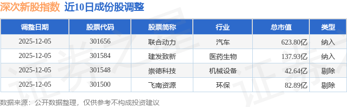近10日内深次新股(399678)指数成份股做了调整,新纳入了2只股票,剔除了2只股票。