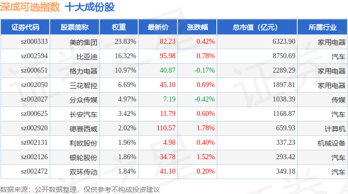 深成可选(399683)指数十大成份股详情如下: