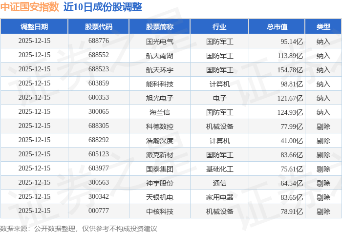 近10日内中证国安(399813)指数成份股做了调整,新纳入了6只股票,剔除了7只股票。