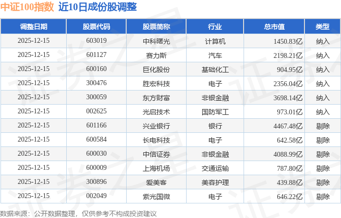 近10日内中证100(399903)指数成份股做了调整,新纳入了6只股票,剔除了6只股票。