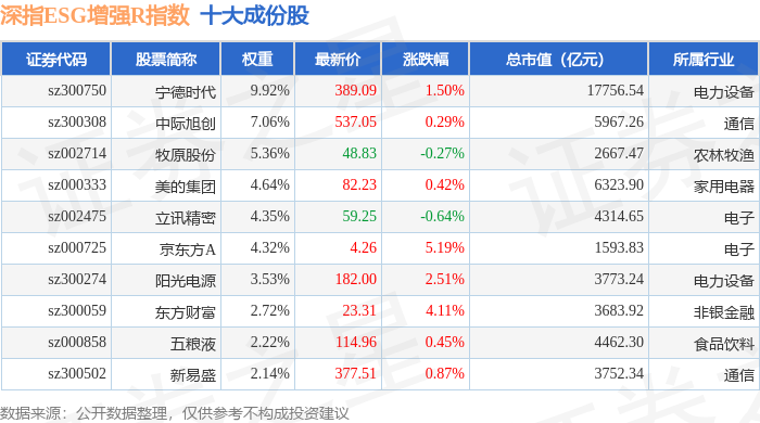 深指ESG增强R(470032)指数十大成份股详情如下: