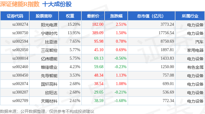 深证储能R(470036)指数十大成份股详情如下: