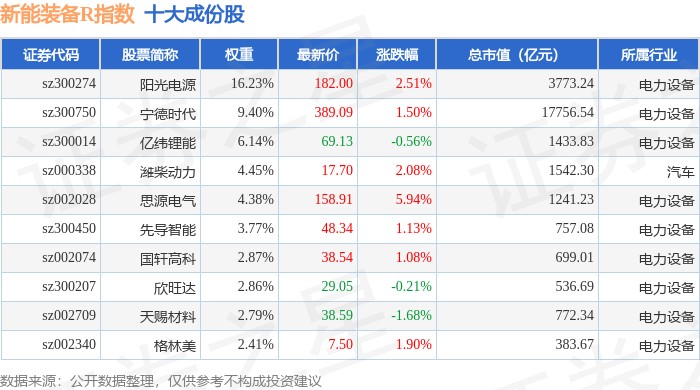 新能装备R(470043)指数十大成份股详情如下: